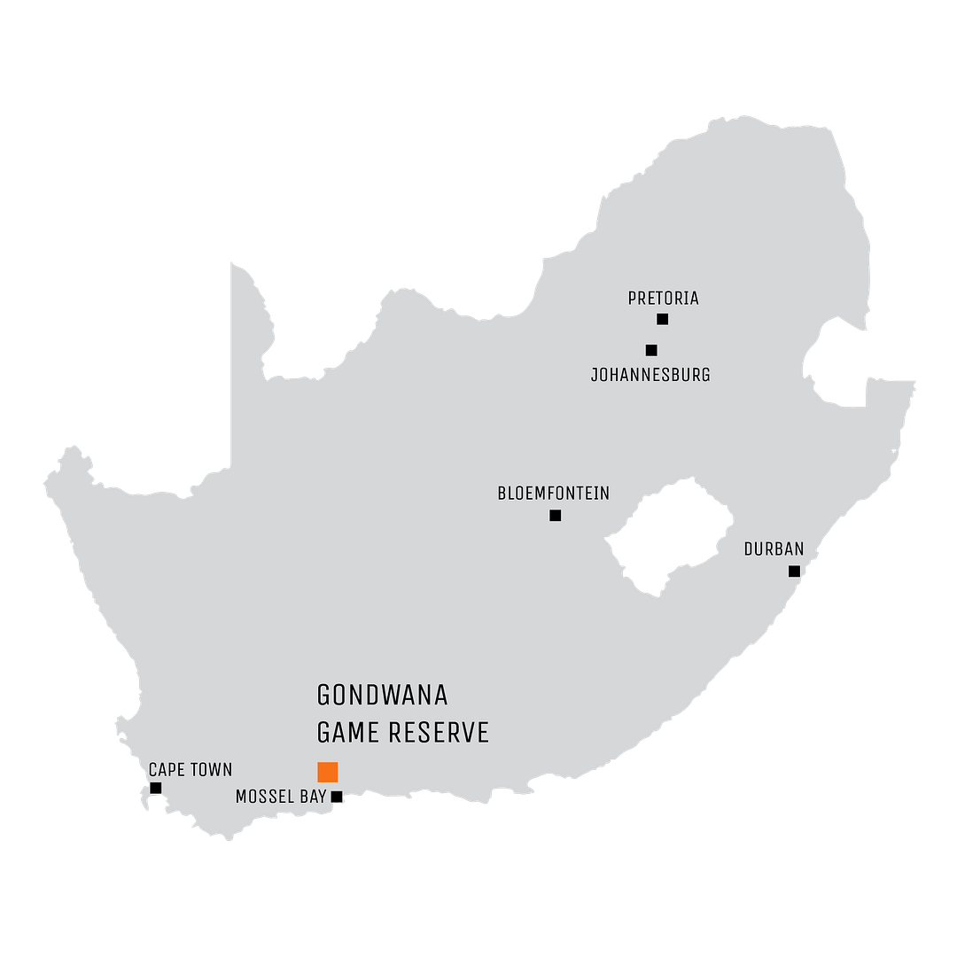 The award-winning Gondwana Game Reserve is an 11 000 hectare big five game reserve conveniently and accessibly located on the scenic Garden Route, a mere 4 hours’ drive from Cape Town or 45 minutes from George airport.