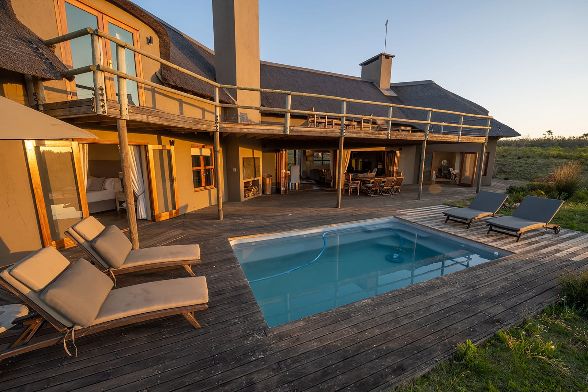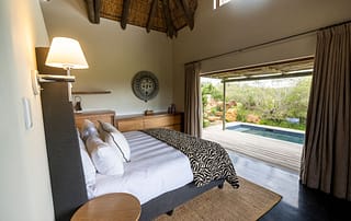 The unit sleeps either 8 adults or 6 adults and 4 children, the property comes with a full complement of staff, including its own butler, chef, and field guide. This is the perfect getaway for friends or families seeking peaceful, quality time together and your privacy will only be interrupted by the numerous wild visitors that drop in regularly for a drink from the swimming pool.